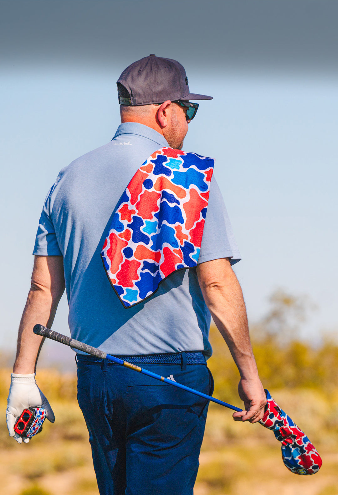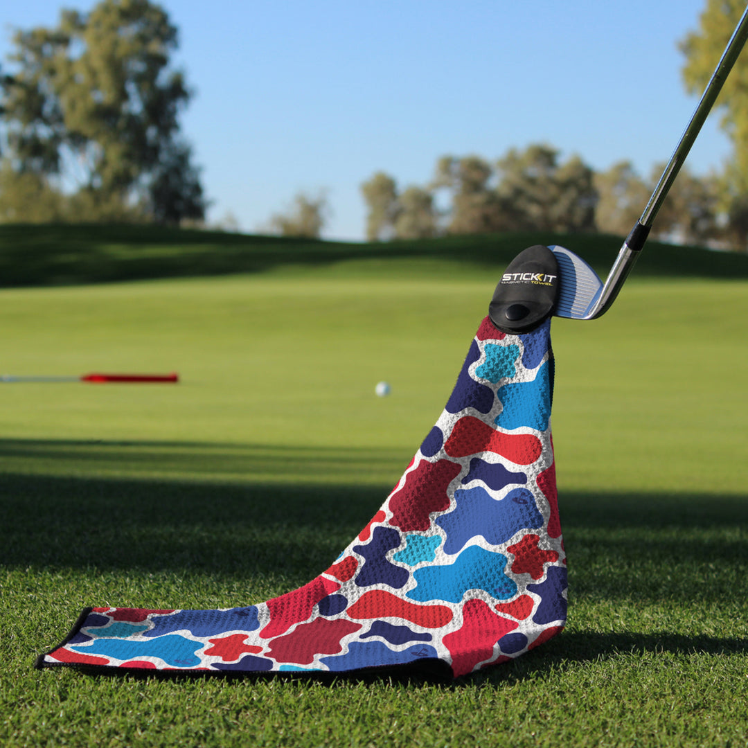 From our magnetic towels to versatile gear straps and protective headcovers, each product brings serious performance with a bold red, white, and blue look that makes a statement anywhere you play.
