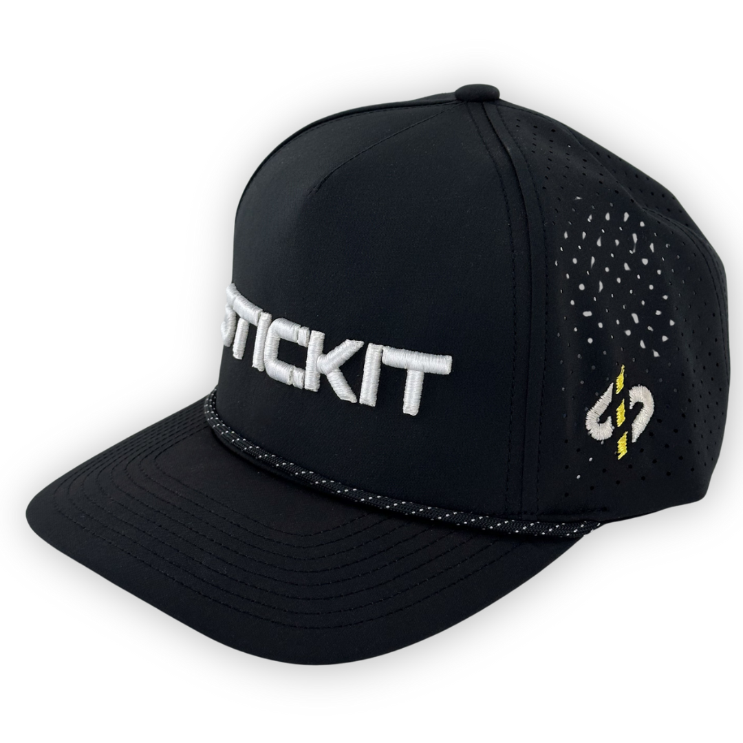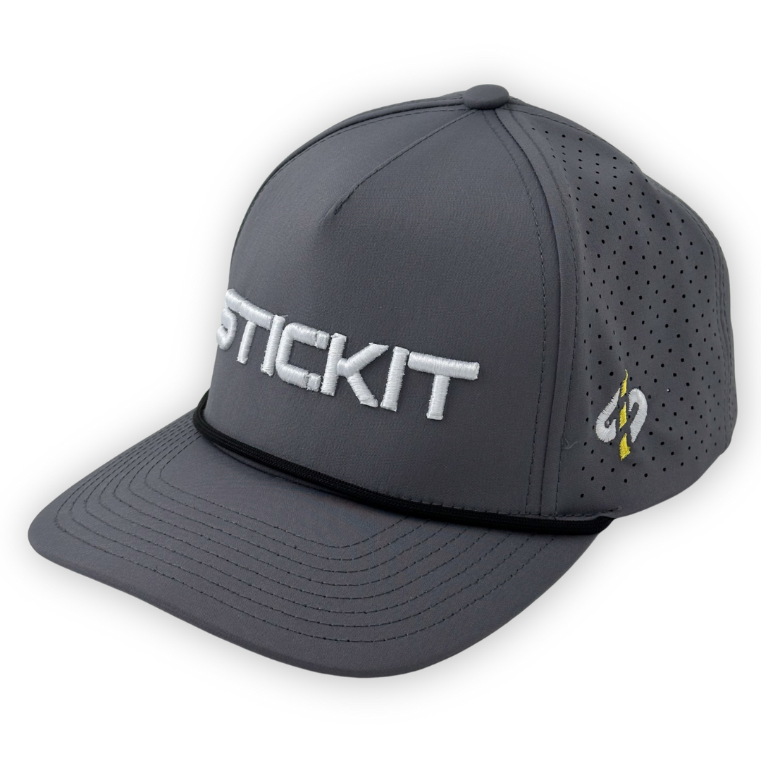 The STICKIT Classic Rope Hat delivers the ultimate mix of performance and style. Perforated side and back panels keep you cool on the course, at the gym, or wherever you play, while the lightweight woven stretch fabric moves with you all day long. Finished with contrast cording, a curved visor, and our signature STICKIT details, this snapback is ready for the grind—and the good times.