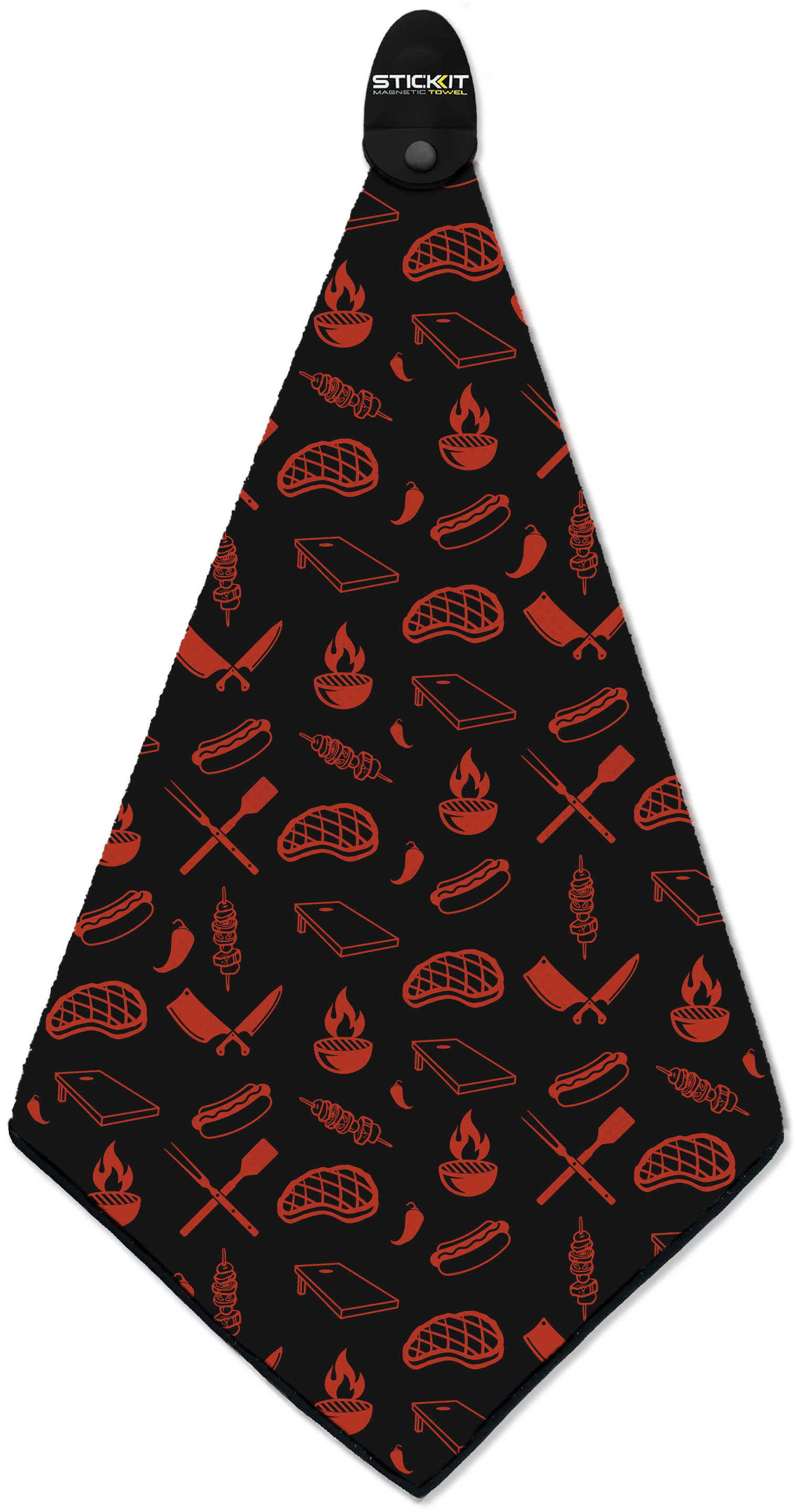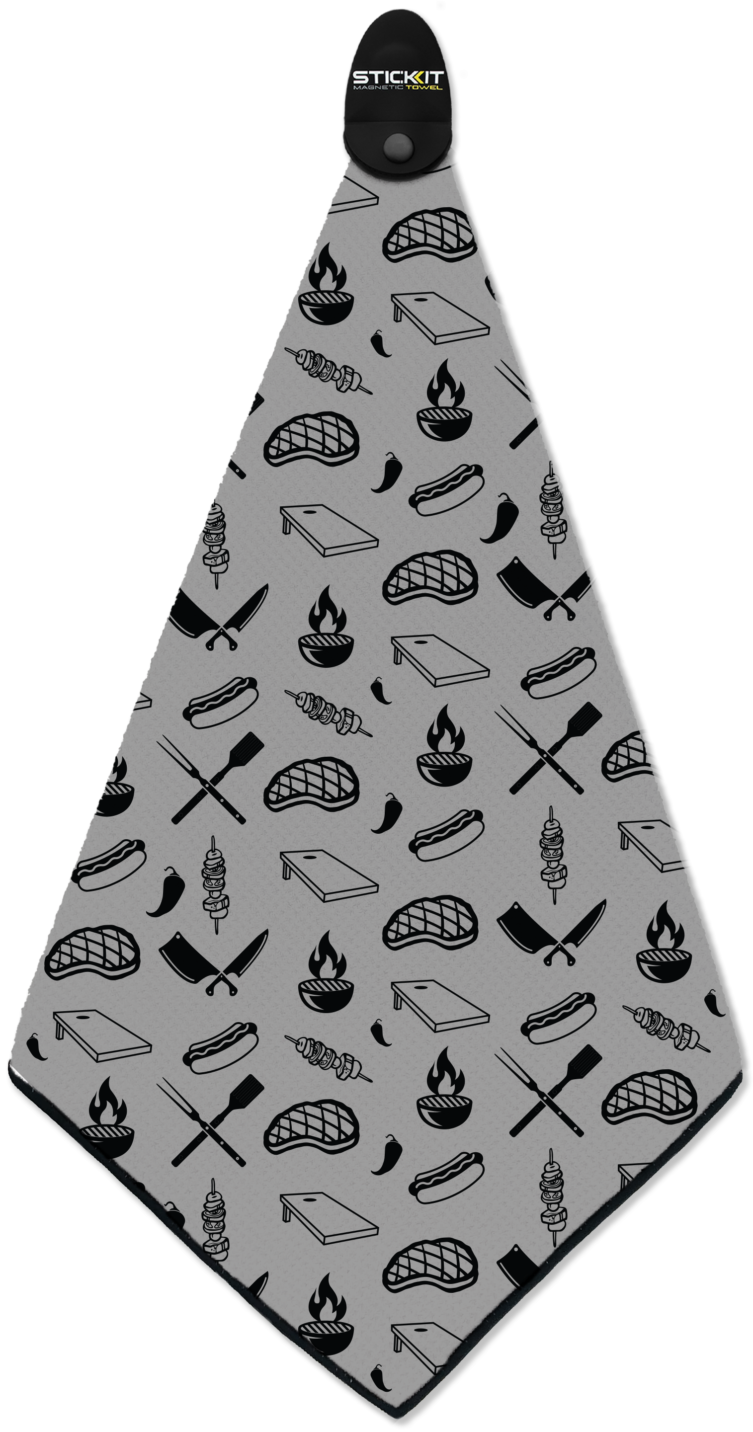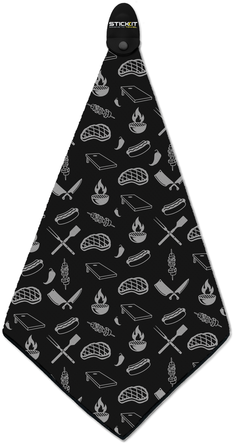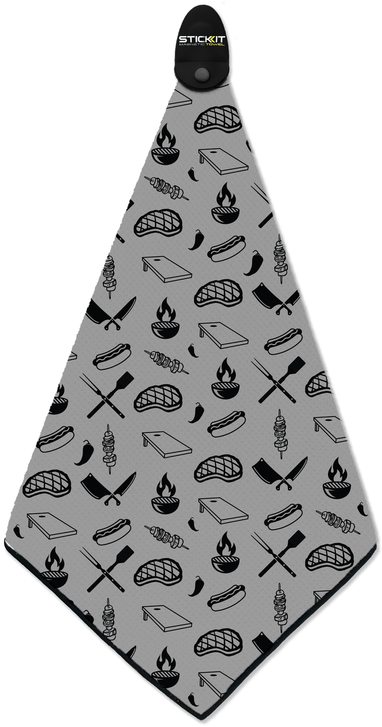 Meet the STICKIT Grill Towel. A premium microfiber grill towel with a patented design industrial-strength removable magnet that sticks securely to your grill — right where you need it. Every time.